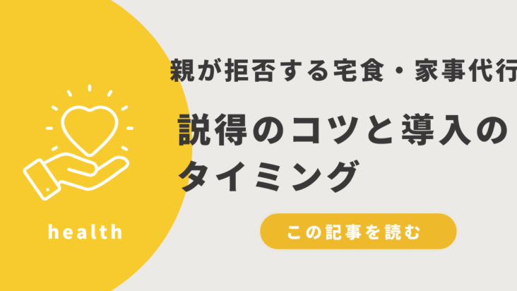 宅食 親が拒否する宅食・家事代行…説得のコツと導入のタイミング 「まだ自分でできる」と言う親の心理 高齢の親が宅食や家事代行を拒否する理由で最も多いのが、「まだ自分でできる」という思い込みです。特に自立心が強い親世代では、少しでもサポートを受けることに対して「自分ができないことを認めたくない」と感じるこ... 2025.08.22 2025.10.28 宅食高齢の親