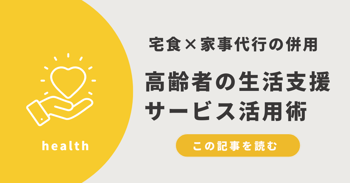 - 宅食(宅配食):食事があらかじめ調理され、冷凍や温かい状態で自宅に届けられるサービスです。食事の準備に時間をかけることなく、手軽に栄養バランスの取れた食事を摂ることができ、特に体力的に料理が難しい高齢者に向いています。